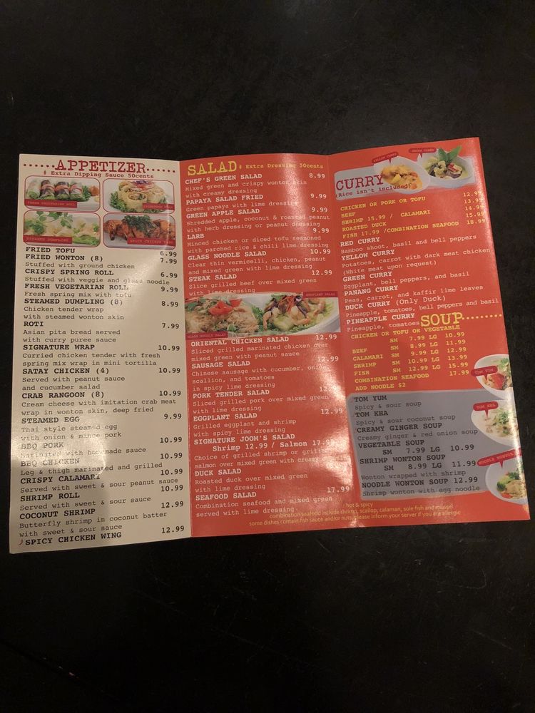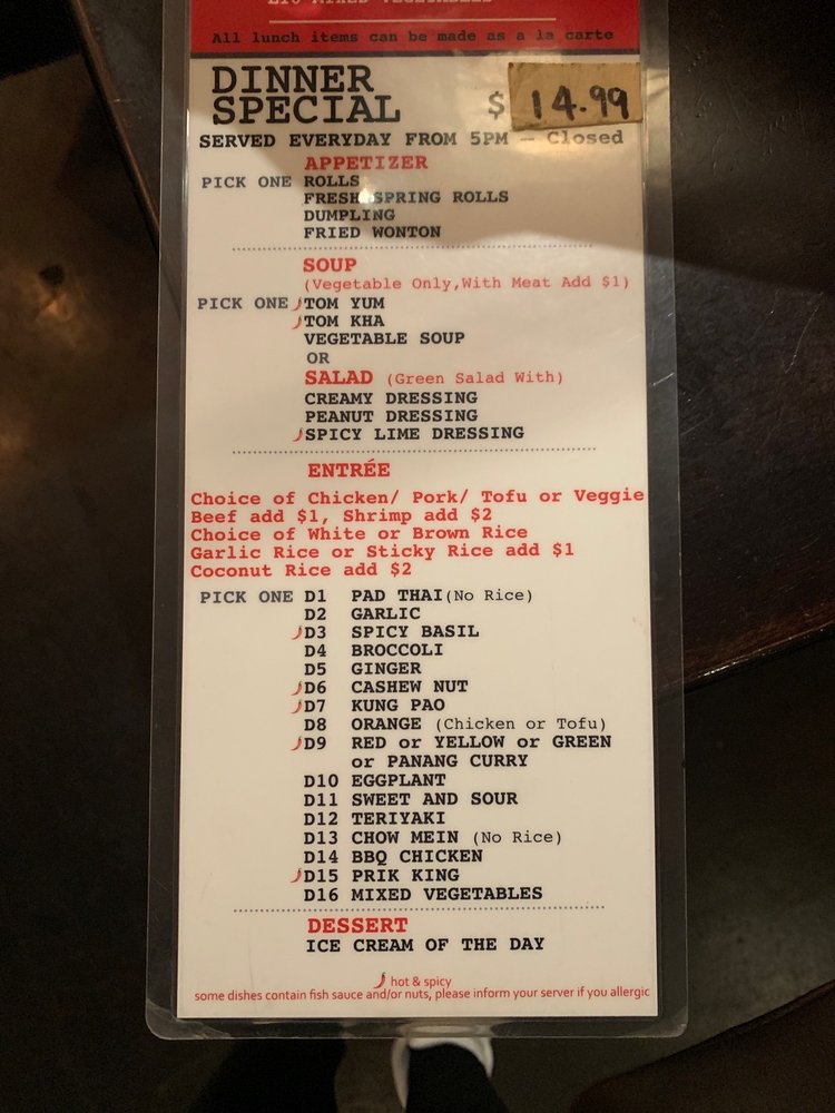For those seeking something special, the Chef's Specials shine, boasting flavorful selections such as Pepper Garlic Shrimp and Chu Chee Salmon Curry. Patrons rave about the fresh ingredients and beautiful presentation, enhancing the overall dining experience. Each dish promises rich, bold flavors that transport you straight to Thailand, all while enjoying the cozy ambiance.